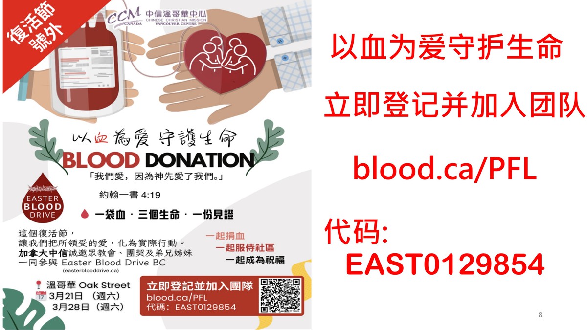 崇拜前上午 10:30 举行「受洗和转会礼」, 请预留时间参加。